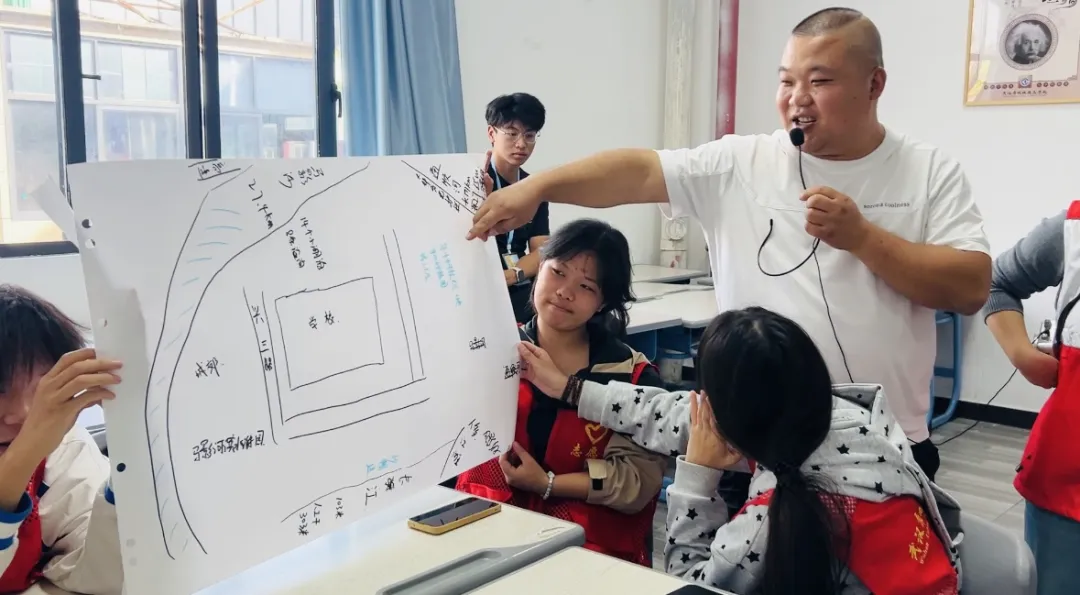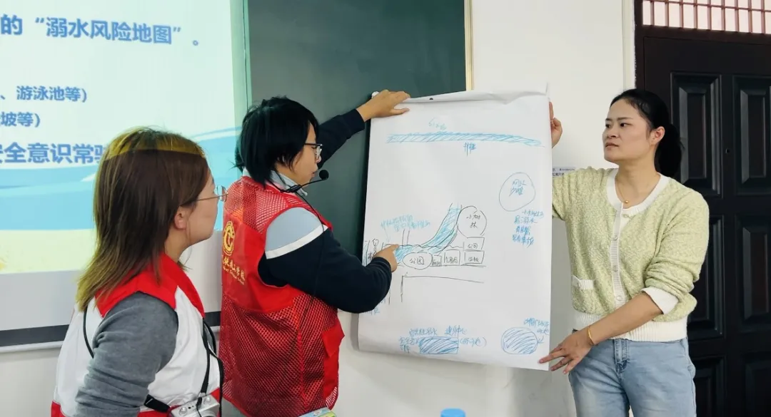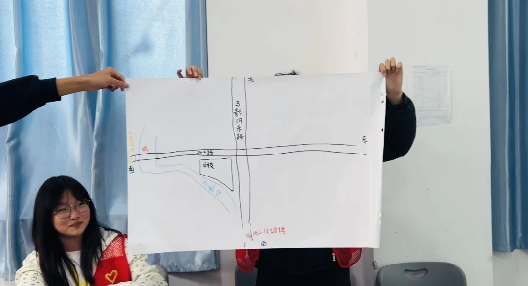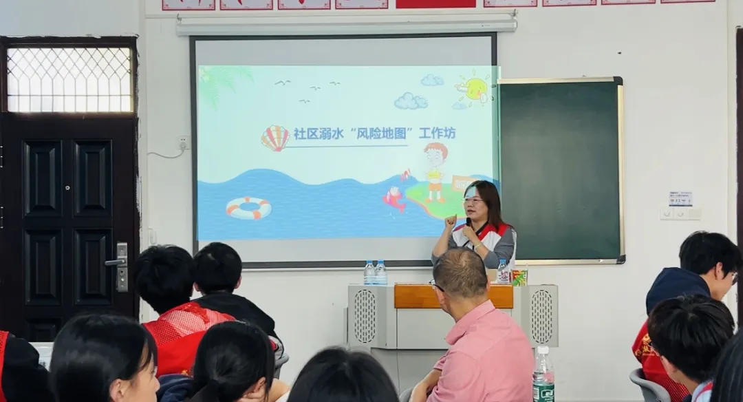 活动伊始,社工人员组织同学们开展“社区溺水风险地图”工作坊。通过展示标注周边河流、池塘、水库等水域的社区地图,引导学生识别潜在危险点,讲解不同水域的风险特征。