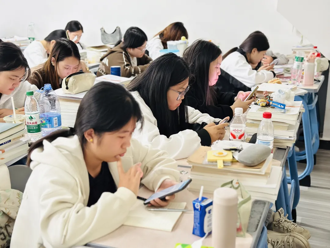 考试期间,各专业考试按计划在机房、教室、报告厅同步推进。新能源汽车检测与维修专业考生在报告厅、护理专业考生在教室分别采用线上手机答题,大家提前调试好设备,考试开始后认真审题,逐题仔细作答,目光紧紧锁定屏幕上的专业理论题目,监考老师在考前逐一对考生设备进行检查,确保答题不受影响。