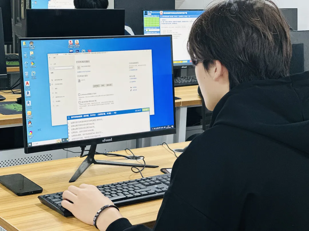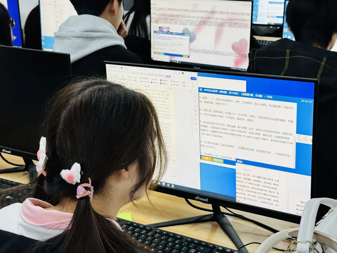 计算机网络应用、工程造价专业考生分别在机房集中答题,考生提前15分钟到场登录系统,同学们紧盯屏幕快速审题,手指在键盘鼠标上灵活操作,键盘敲击声与鼠标操作声有序交织,监考老师轻步巡视,不时提醒考生注意答题规范。
