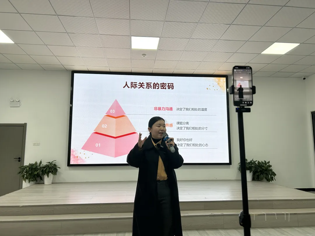 为帮助同学们驱散心理迷雾,掌握科学的沟通技巧,12月22日下午,武汉市城铁技工学校特别邀请资深心理专家汪幸老师,为我校全体师生开展了“青春不社恐、有边界会沟通”心理健康专题讲座。本次讲座通过线下演讲+线上直播的方式进行,聚焦青春期心理需求,干货满满,为同学们的成长之路注入温暖力量!