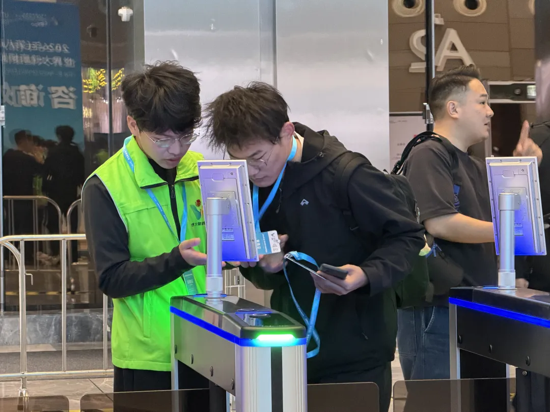 服务期间,志愿者们分工明确、协同配合,以饱满精神状态高效落实各项工作:在展会入口,我校志愿者严格执行证件查验与门禁管控,耐心细致为入场人员指引路线,全力维护秩序井然的入场环境。
